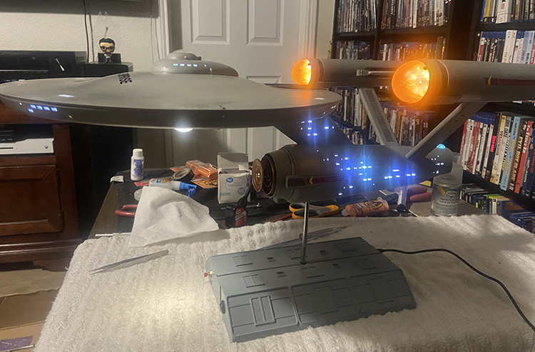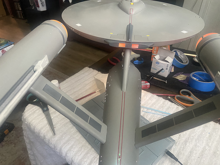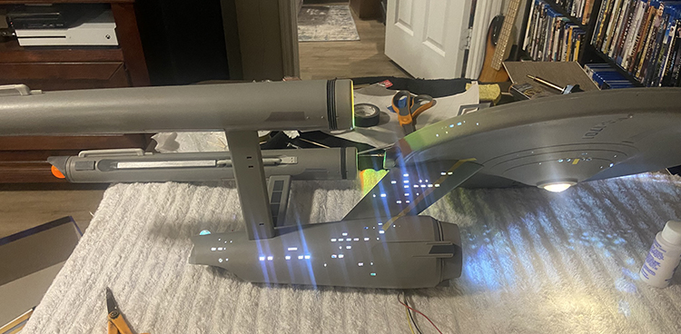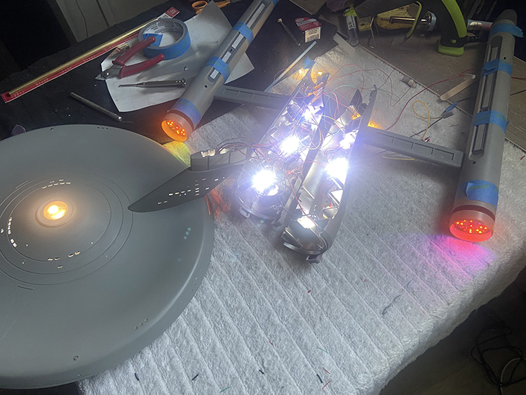The client wanted a customization -- the aft "bulbs" on the warp engines to glow similarly to the bussard collectors.