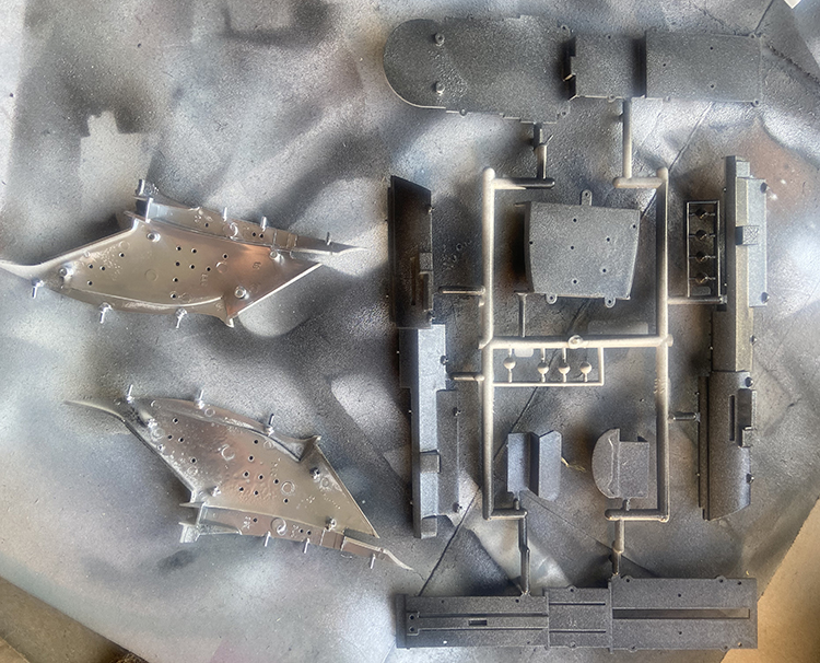 First steps! Lightblocking the shuttle bay pieces and the neck halves.