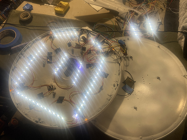 Wiring/lighting progress. Assembly of the secondary hull. This lighting kit (TenaControls) is quite the challenge.