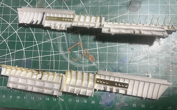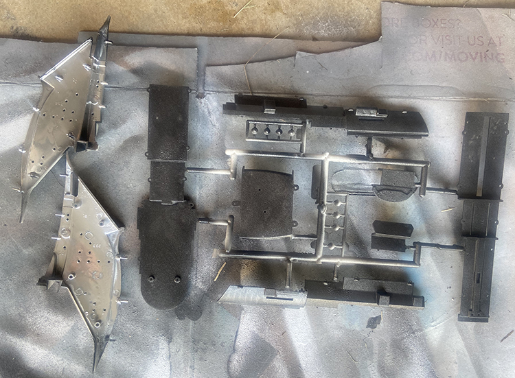 First steps! Lightblocking the shuttle bay pieces and the neck halves.